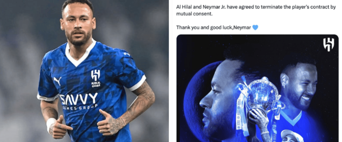 ⚽️ Neymar and Al-Hilal part ways! After a brief stint in Saudi Arabia, Neymar and Al-Hilal have mutually agreed to terminate their contract.
